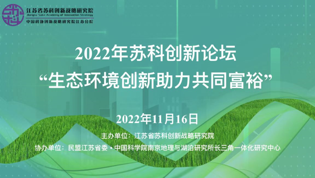 11月16日,2022年苏科创新论坛“生态环境创新助力共同富裕”在句容陈庄生态实践基地举办。本次论坛由江苏省苏科创新战略研究院主办,民盟江苏省委·中国科学院南京地理与湖泊研究所长三角一体化研究中心协办,论坛邀请了省科协和省委宣传部有关领导、相关领域知名专家及陈庄村民参会,同时吸引了来自科研院所、高校、企业及媒体等各界人员参加。